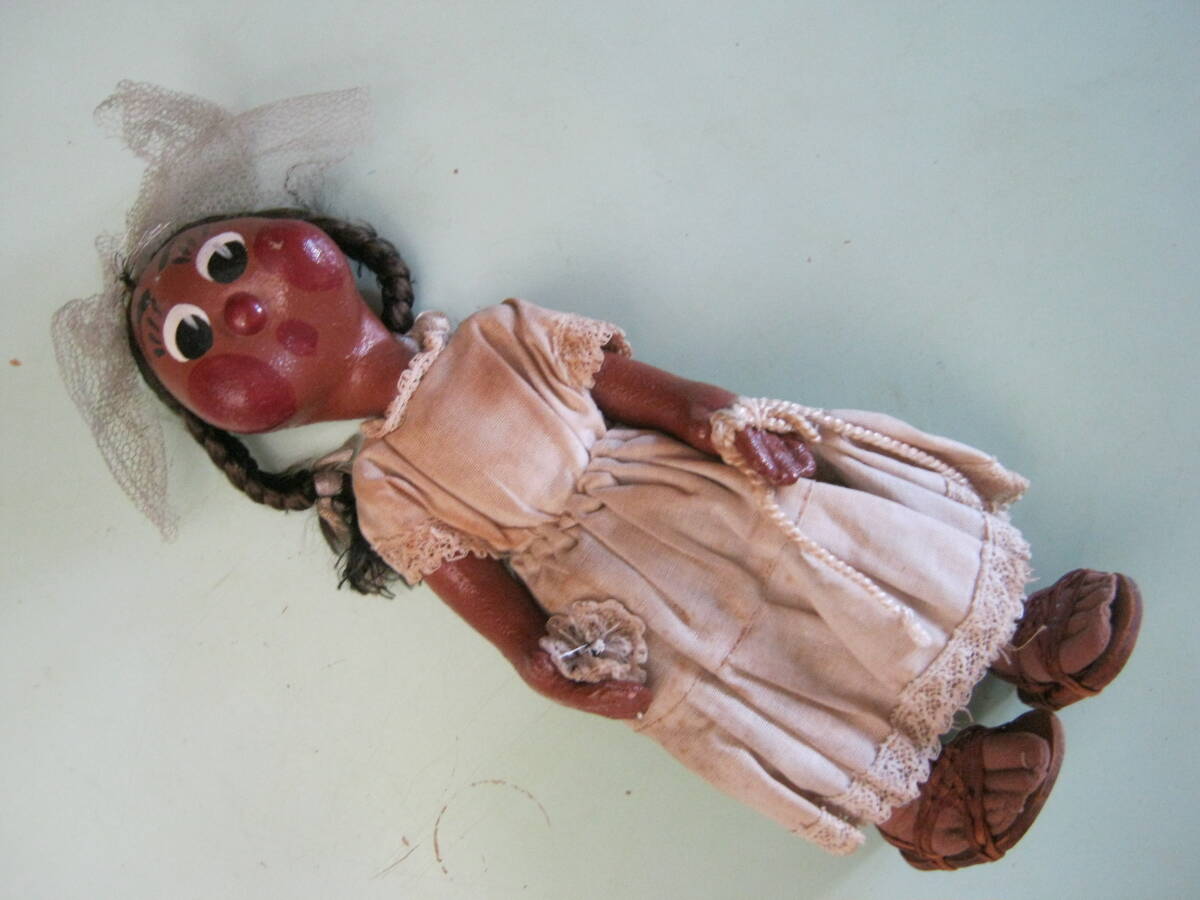 - 【頭にレースを付け髪を三つ編みにした白いドレスを着た人形(メキシコ製)】