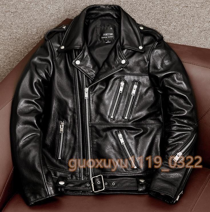 - 高級感満載! 韓流 レザージャケット 本革 ライダースジャケット メンズファッション バイクジャケット カウハイド 牛革 革ジャン