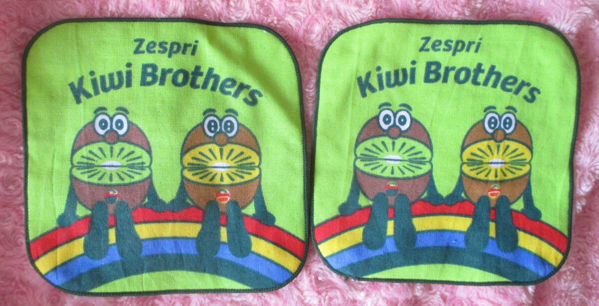 > Zespri Kiwi Brothers新品2枚ゼスプリ キウィ 粗品ガーゼハンカチミニタオル サイズ約18×18cmほど綿100%