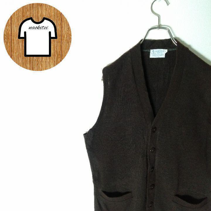 - VIRGIN ORLON ベスト L ブラウン 革付き レトロボタン A510