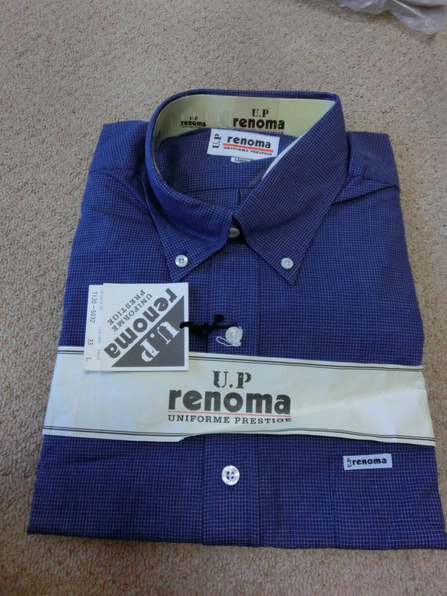 - ☆UP renoma メンズ 長袖 ボタンダウンシャツ(Lサイズ)ネイビー×白の細かい格子柄(新品未使用)☆