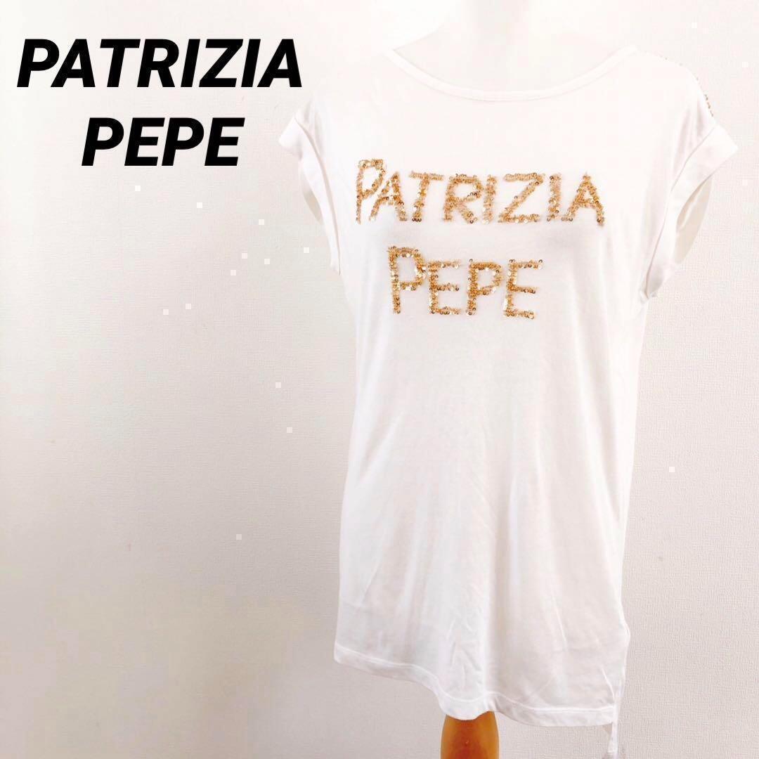 - パトリツィアペペ 半袖シャツ スパンコール ビーズ ビッグロゴ ゴールド お洒落
