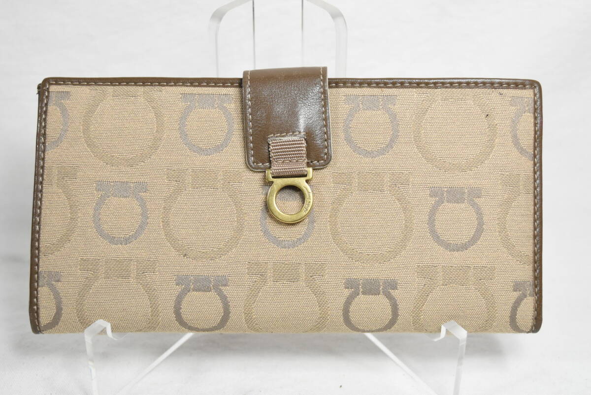 > サルヴァトーレ フェラガモ ガンチーニ 長財布 ウォレット 二つ折り キャンバス 美品