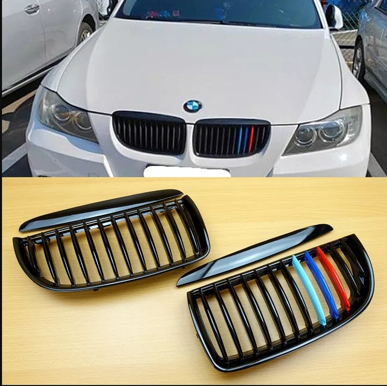 > 最上級品質▲BMW 3シリーズ BMW E90 E91 フロントグリル ブラック シングルバー 光沢黒+Mの3色カラー 塗装済 セット ABS製 2005-2008 前期
