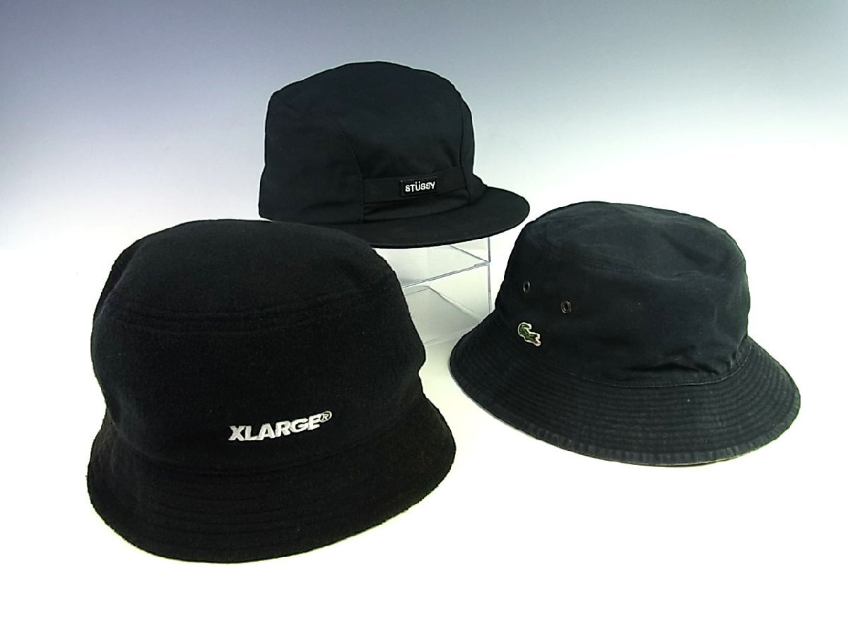 > ◆XLARGE/STUSSY/LACOSTE◆エクストララージ/ステューシー/ラコステ◆バケットハット×2+ワークキャップ 計3点◆黒/茶/チェック◆L◆