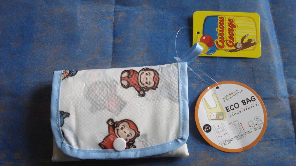 - おさるのジョージ エコバック 白//約 W30㎝×H43㎝×D21㎝// ポリエステル製 //買い物袋・折り畳みエコバッグ