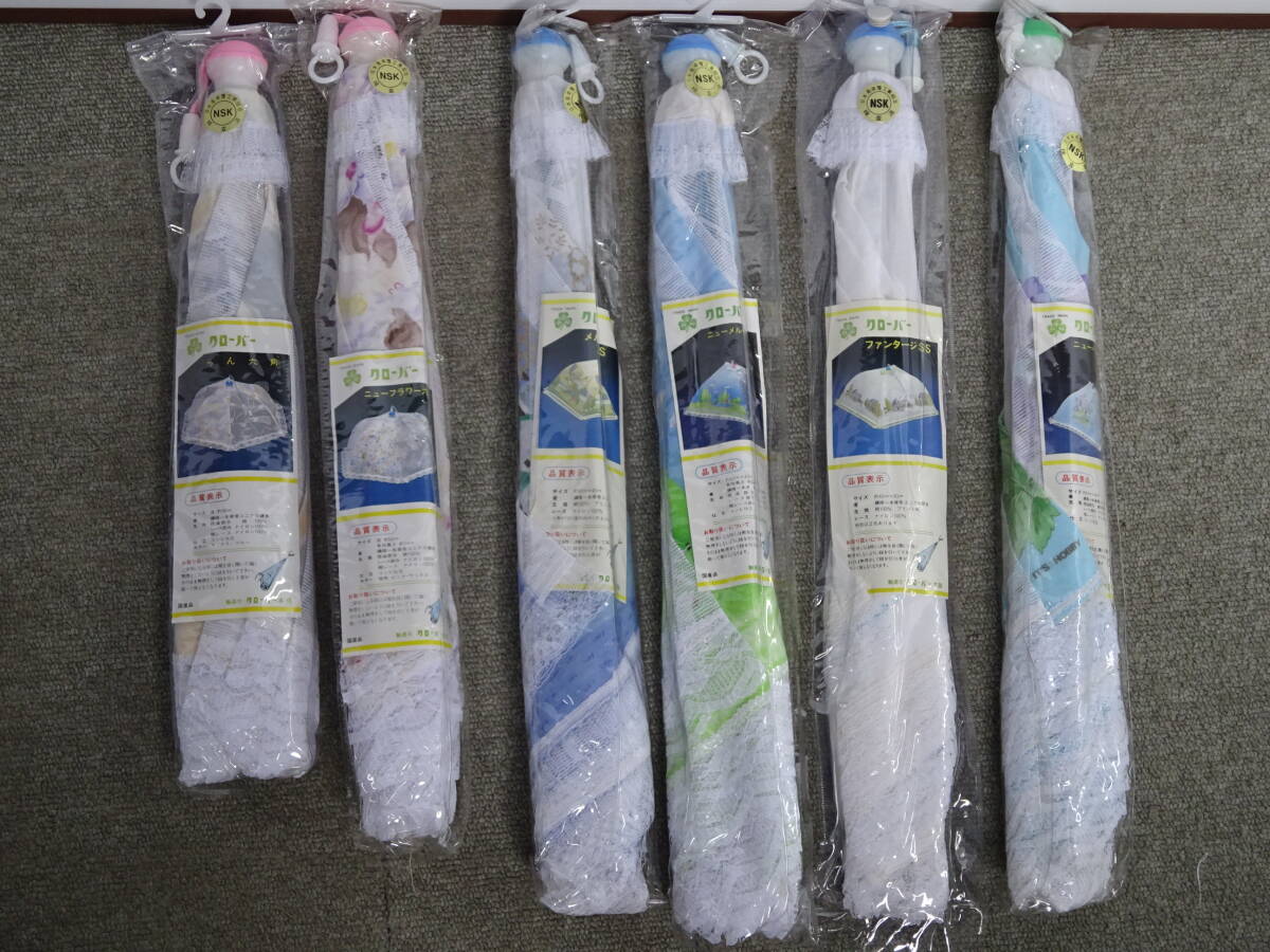 - 未使用 長期保管品 昭和 レトロ はいちょう 6点まとめ ⑦ 食卓傘 キッチンパラソル フードカバー 蠅帳 レース 四角 六角 クローバー本舗