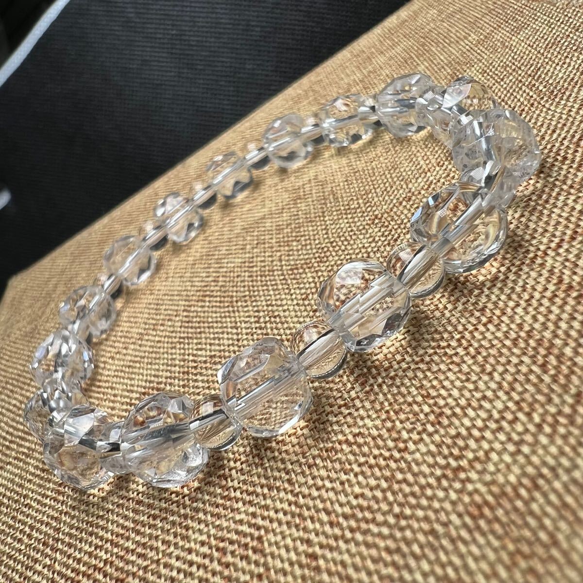 - 【610187】高品質 天然 水晶 キューブカット 7mm ブレスレット 天然石