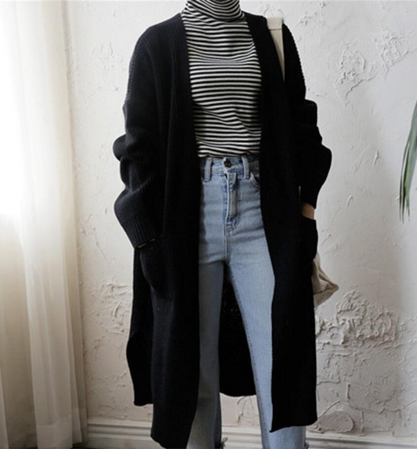 > 秋冬 / オリジナル ボレロ ロング ニットカーディガン カジュアル 防寒 ニットアウター ゆったり ロングカーディガン 無地 長袖 / 黒