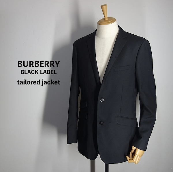 - TK 使用感少 美品 バーバリー ブラックレーベル 『お洒落な細めのショートラペル』 テーラードジャケット LL 黒 三陽商会