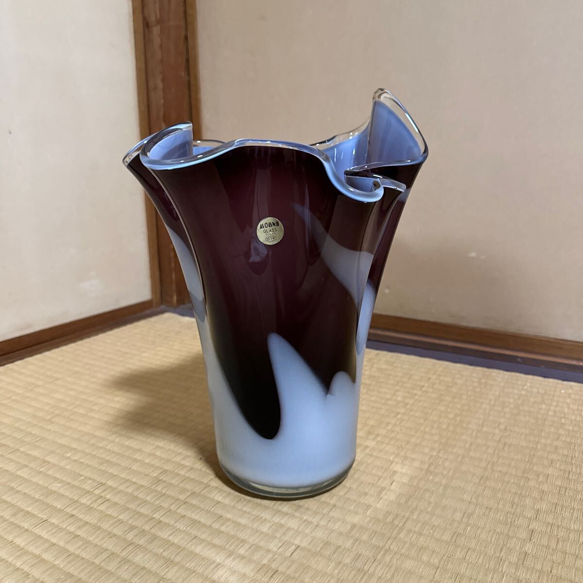 - 【昭和レトロ】花瓶 赤紫 白 マーブル フリル タキナミガラス BonTon