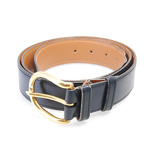 > エルメス HERMES ゴールドバックル ネイビー レザー ベルト 最長94.5cm程度まで有効(14590)