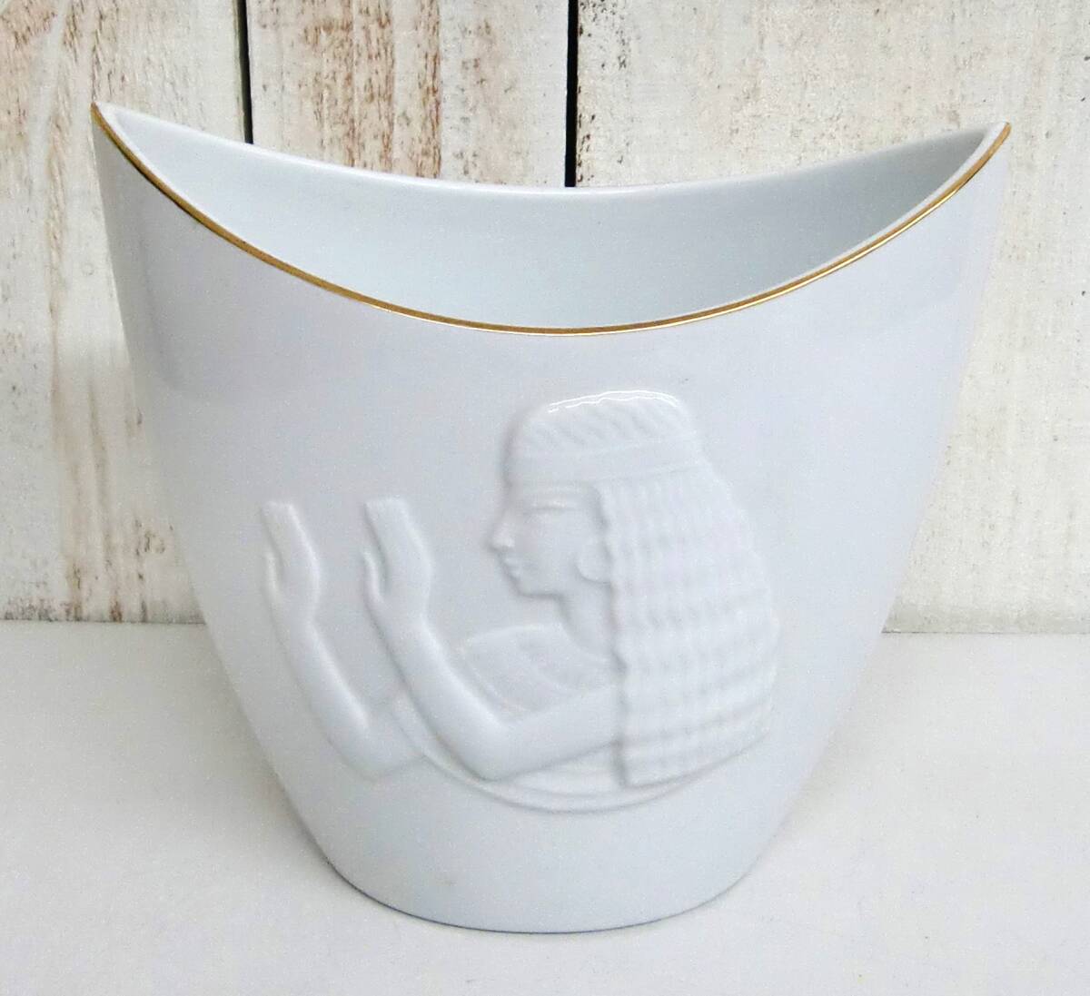 > アンティーク *RC ノリタケ *花瓶 花器 フラワーベース *白磁 スフィンクス 浮き彫り *Royal Crockey *記念名入り
