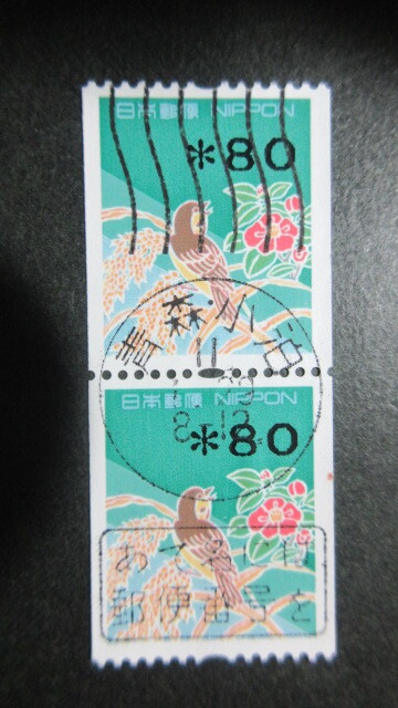 - 【新丸型和文機械印】青森・小泊/11/1.29/8-12 (縦波エラー印/標語印付き)