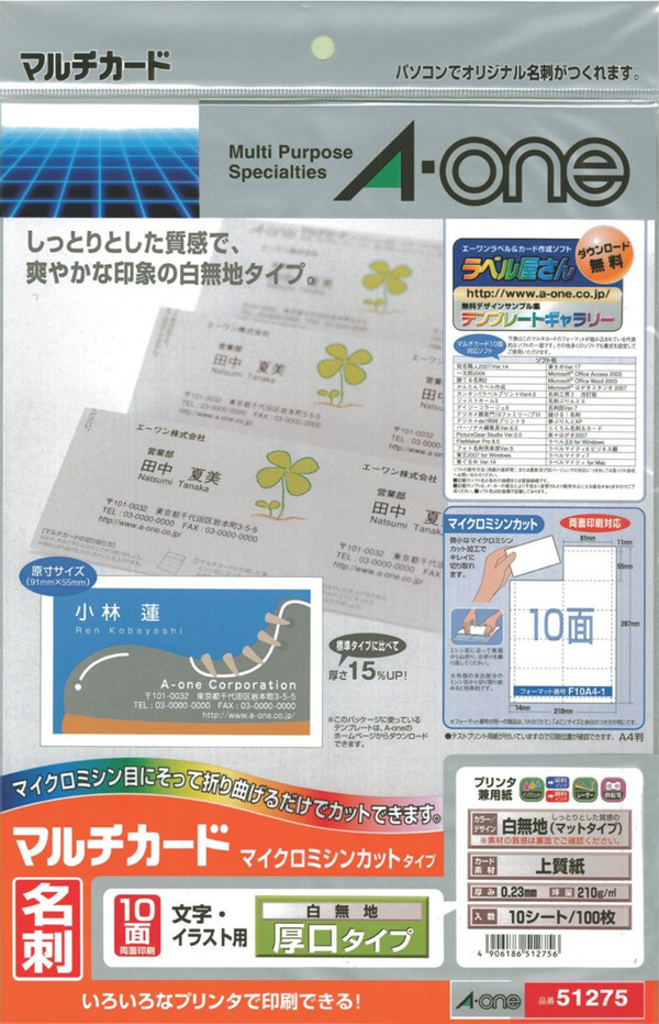 - メール便発送 エーワン マルチカード兼用紙厚口10面10シート 51275 00046133