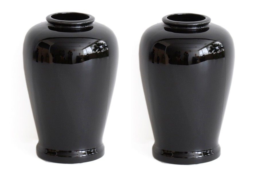 - 国産 陶器 夏目 ■ 花瓶 ■ 黒無地 6寸 ■ 2本組 ■ 高さ17.5cm ■ 仏壇 お盆 お彼岸 お墓参り 供養