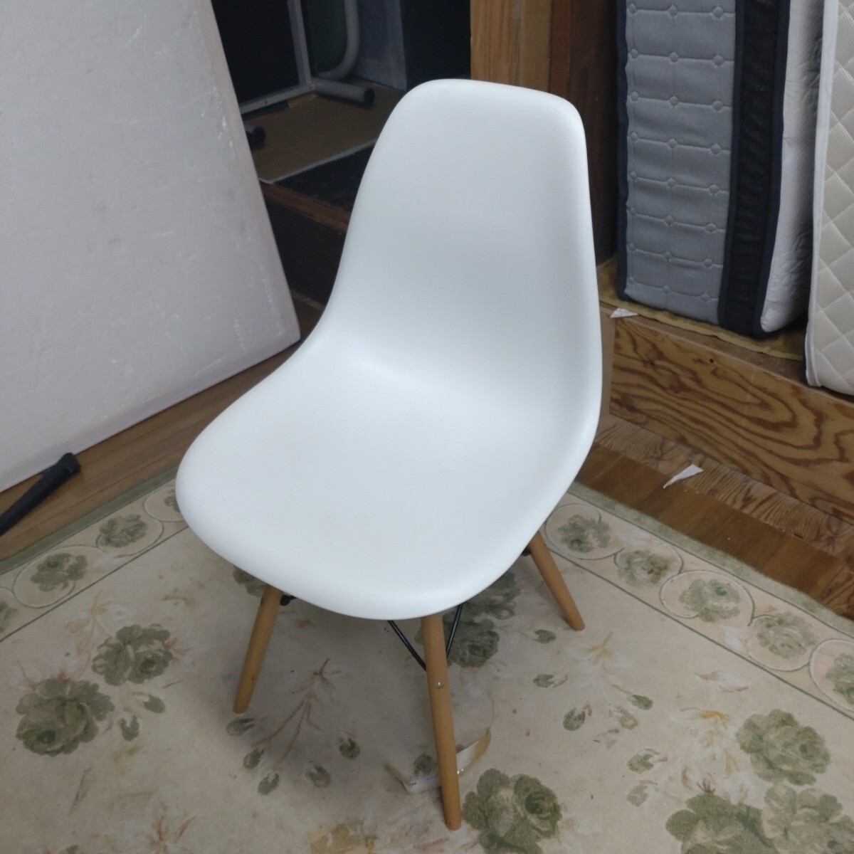 - オーヤマ デザインチェア 肘無し シェルチェア 白 ダイニングチェア 脚木製 中古 現状渡し