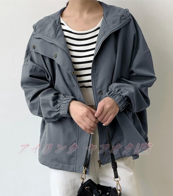 > ☆新品Fサイズ カジュアル 大きいサイズ レディース パーカー ブルゾン ショートコート 長袖 アウター ジャケット 灰