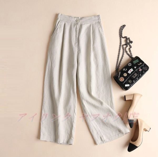 - ☆新品サイズ選択可 夏 カジュアルパンツ ボトムス 無地 ワイドパンツ ルーズパンツ コットンリネン ポケット 浅カーキ
