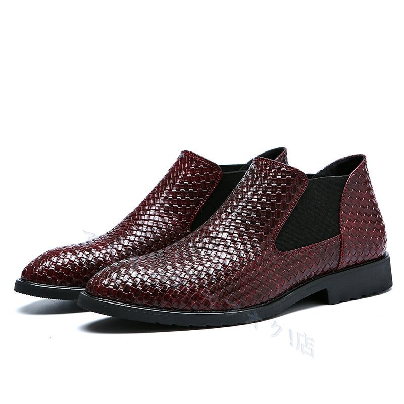 > ☆新品メンズ ショートブーツ ビジネス レザー シューズ エンジニアブーツ 紳士靴 革靴 ワークブーツ イギリス風 レッド 24~28cm