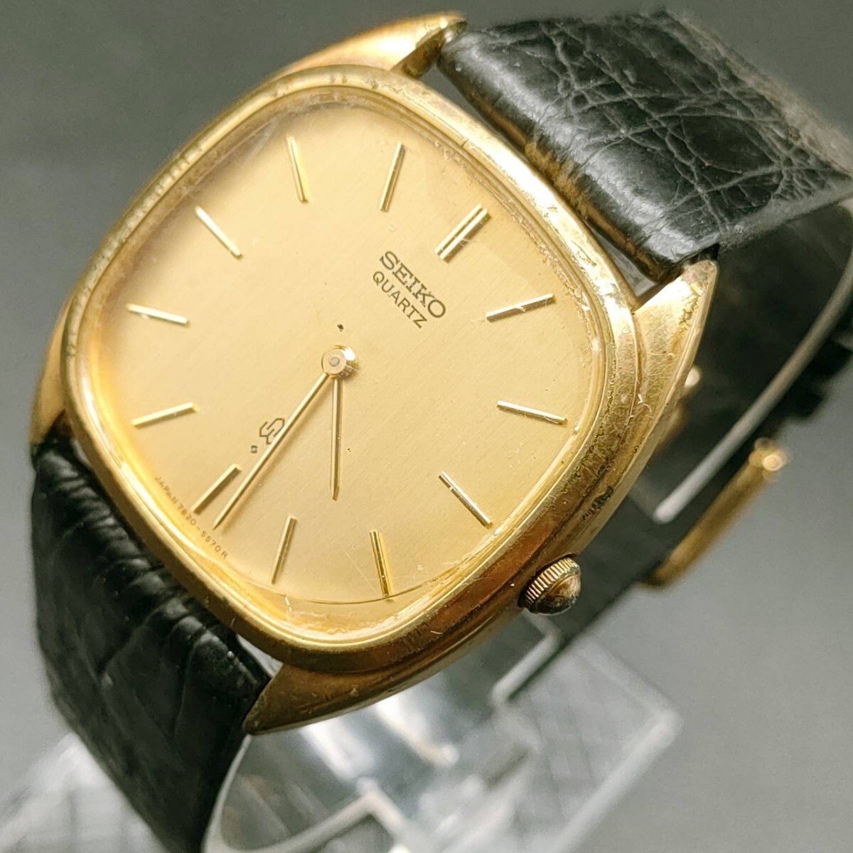 > T275 【レア】 SEIKO セイコー 腕時計 7820-5570 クウォーツ 3針 金色文字盤 アナログ ヴィンテージ アクセサリー ゴールド 1