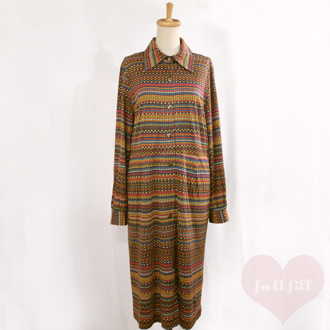 - ワンピース 古着 昭和 レトロ 長袖 モザイクタイル柄 カラフルポップ 70年代80年代 ビンテージ ヴィンテージ vintage レディース古着 used