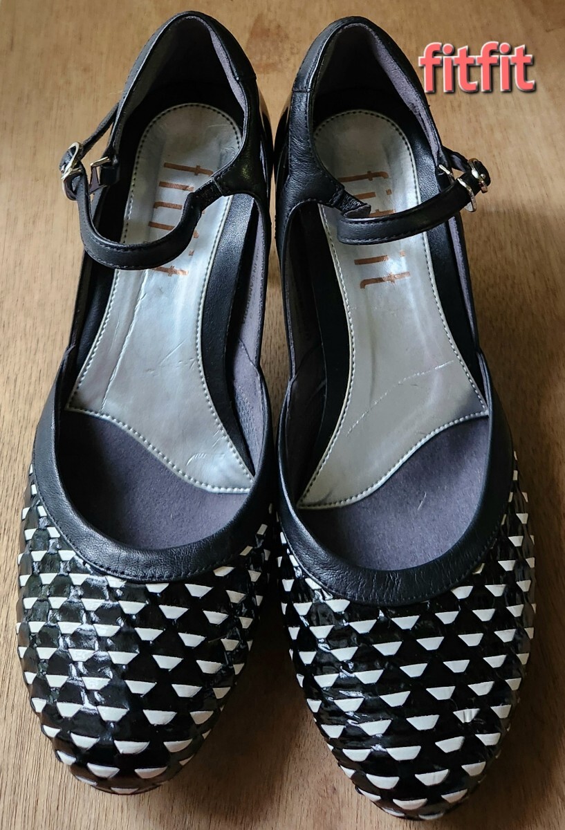 - 未使用保管品 fitfit エナメル 可愛いバイカラーパンプス ブラック 黒
