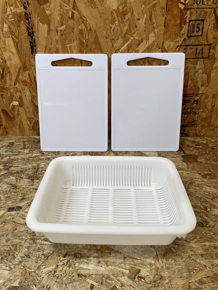 - C(6749)水切りかごトレー まな板 2枚 キッチン用品 水切り 中古品
