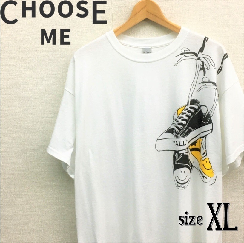- KZ3616★CHOOSE ME 手刷りプリントTシャツ★XL★白 ALL JACK SMILE THREE FACE オールスター コンバース