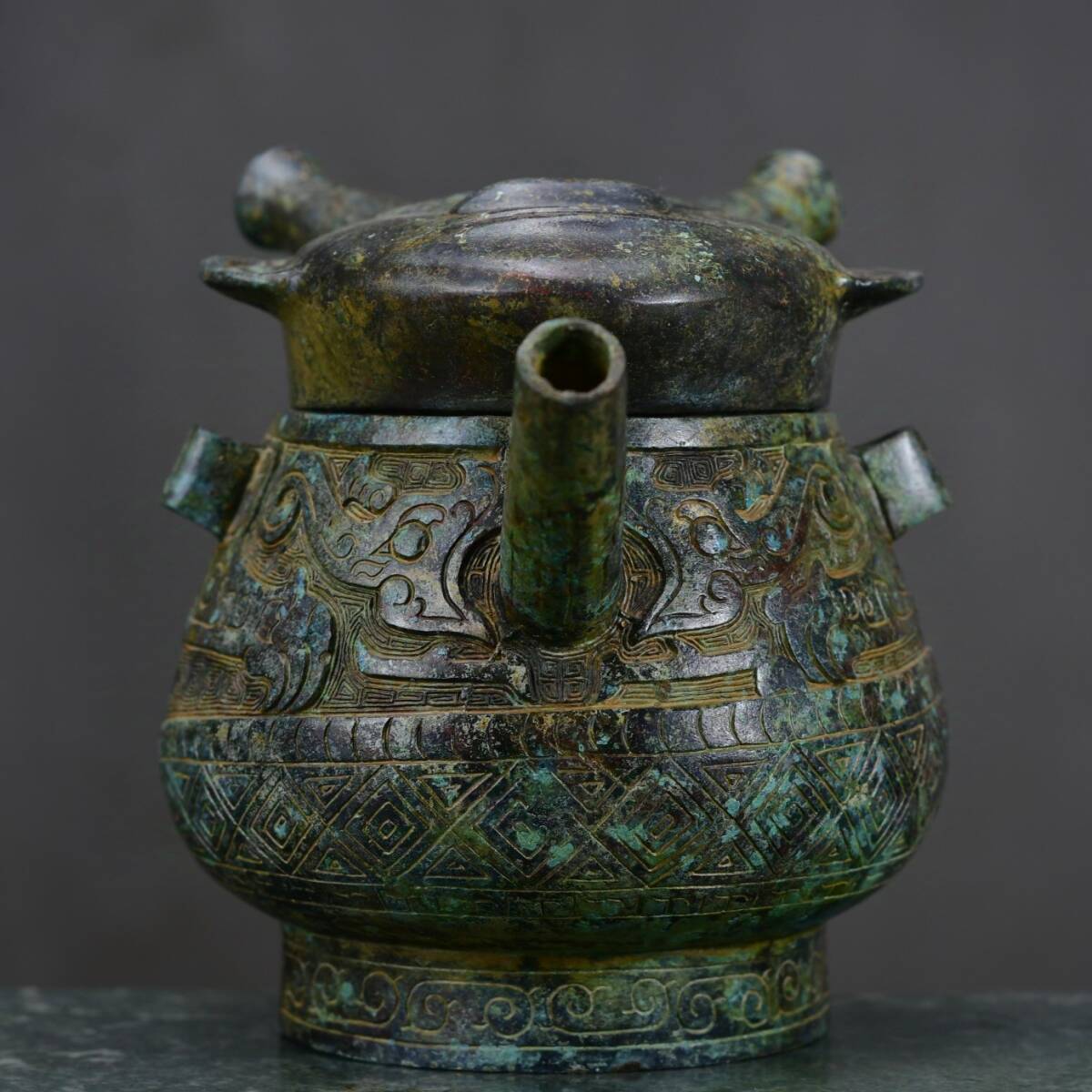 - ◆蔵出◆古美術 中国古玩 西周時期 古銅製 青銅器 銘文人面禾壼 盖鼎 細密細工造 置物 擺件 古賞物 時代物 AT17