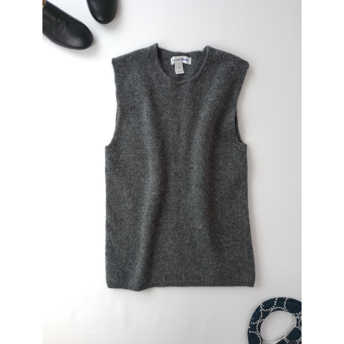> COMME des GARCONS SHIRT コムデギャルソン シャツ fully fashioned knit gauge 7 milled ウール ニット ベスト グレーS
