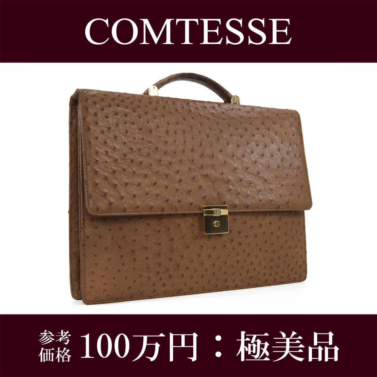 - 本物 送料無料 コンテス ハンドバッグ ビジネスバッグ メンズ レディース オーストリッチ 茶色 ブラウン A4 最高級 レア 鞄 バック F202