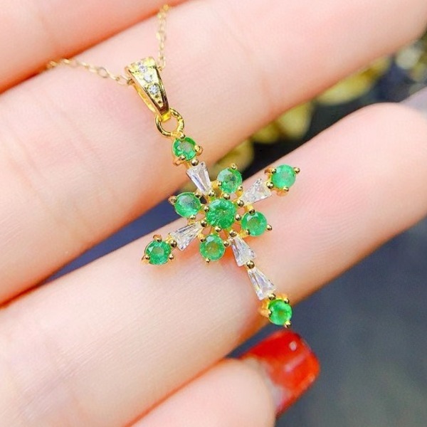 シルバー925チャーム付き天然エメラルドペンダント、3mm