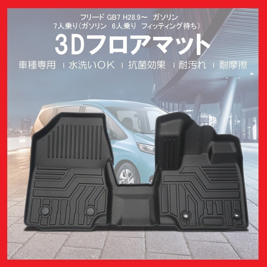 - 【3Dフロアマット/車種専用設計】★HONDA フリード GB7 H28/9~/ガソリン車7人乗り★フロントのみ/立体形状でフロアにフィット/簡単水洗い
