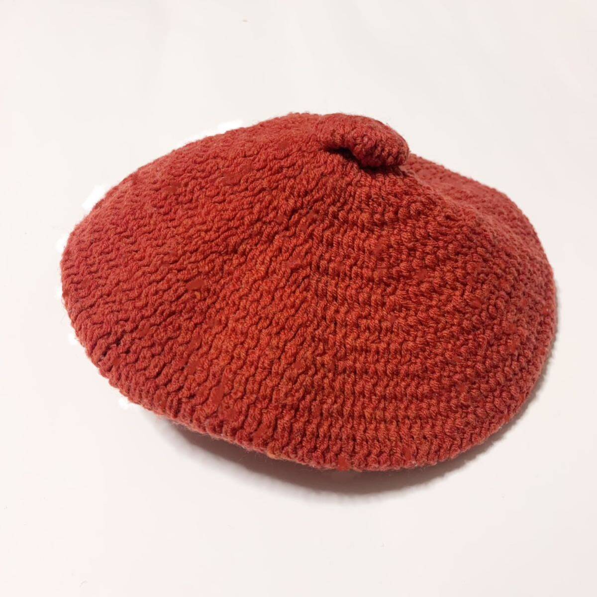 - アクリルニットベレー帽 手編み オレンジ ブラウンレッド レトロ 毛糸 秋冬 コスプレ 衣装 ハロウィン 仮装 漫画家帽