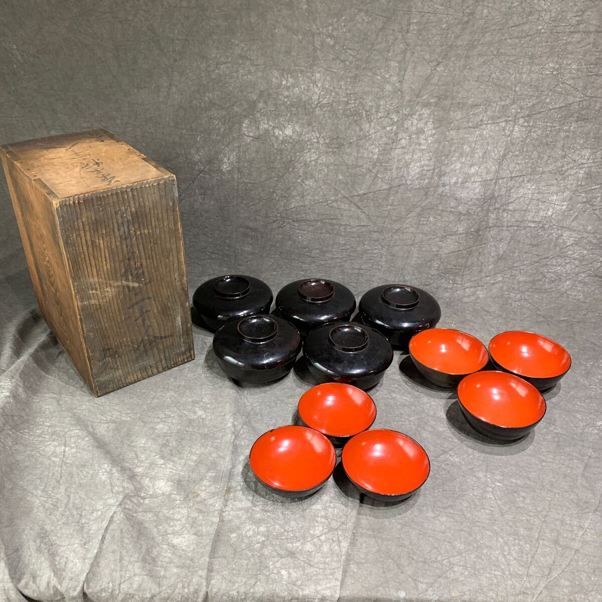 - 古い食器 会席膳 漆塗り 木製 汁椀 当時物 和食器 11個セット 吸物椀 雑煮椀 茶道具