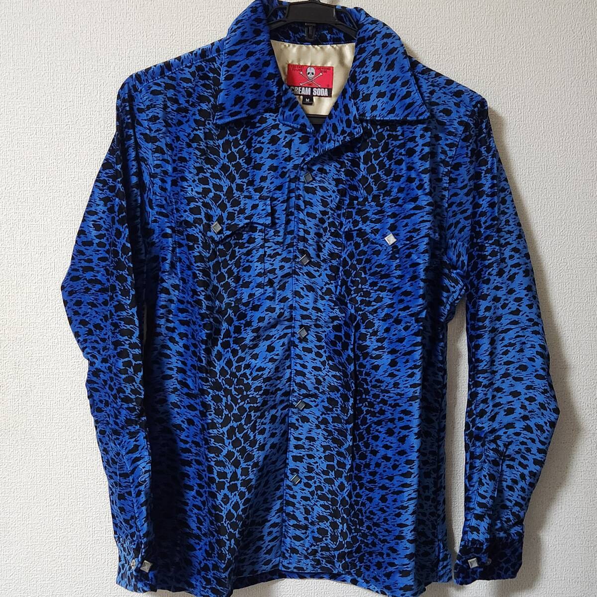 - クリームソーダ 青ヒョウ柄ベッチンシャツ ピンクドラゴン CREAM SODA