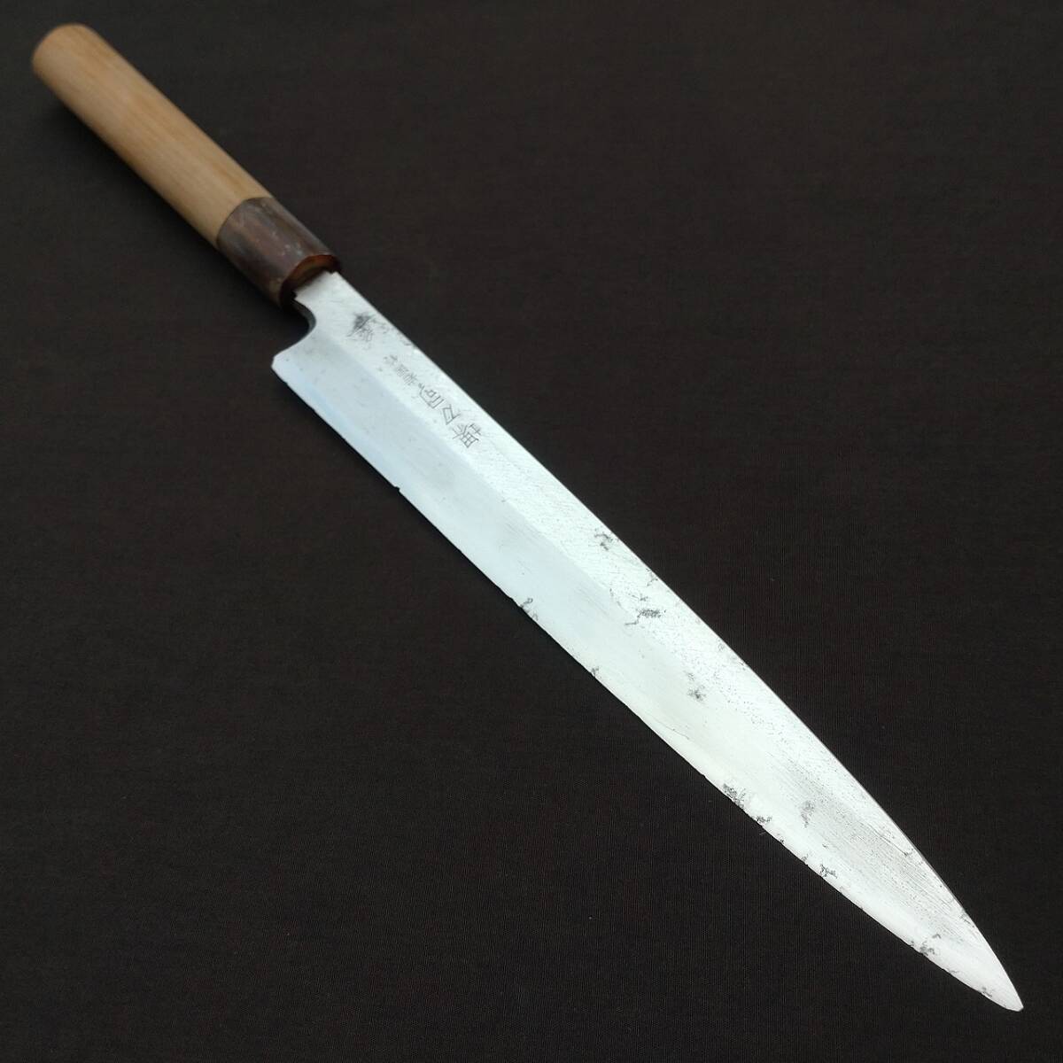 - 堺刀司 岩国作 柳刃包丁 刺身包丁 正夫 刃長約225㎜ 峰厚約4㎜ 片刃 水牛桂 やなぎ 庖丁 刃物 和包丁 Japanese Sashimi Knife【5468】【b】