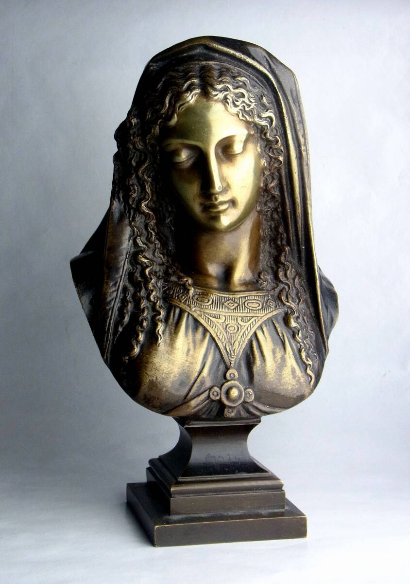 - 逸品 19世紀フランス 彫刻家 Desire Pierre Louis Marie作 聖母マリアの胸像 若きマリア像 アンティーク 聖像 宗教美術 ブロンズ真鍮合金