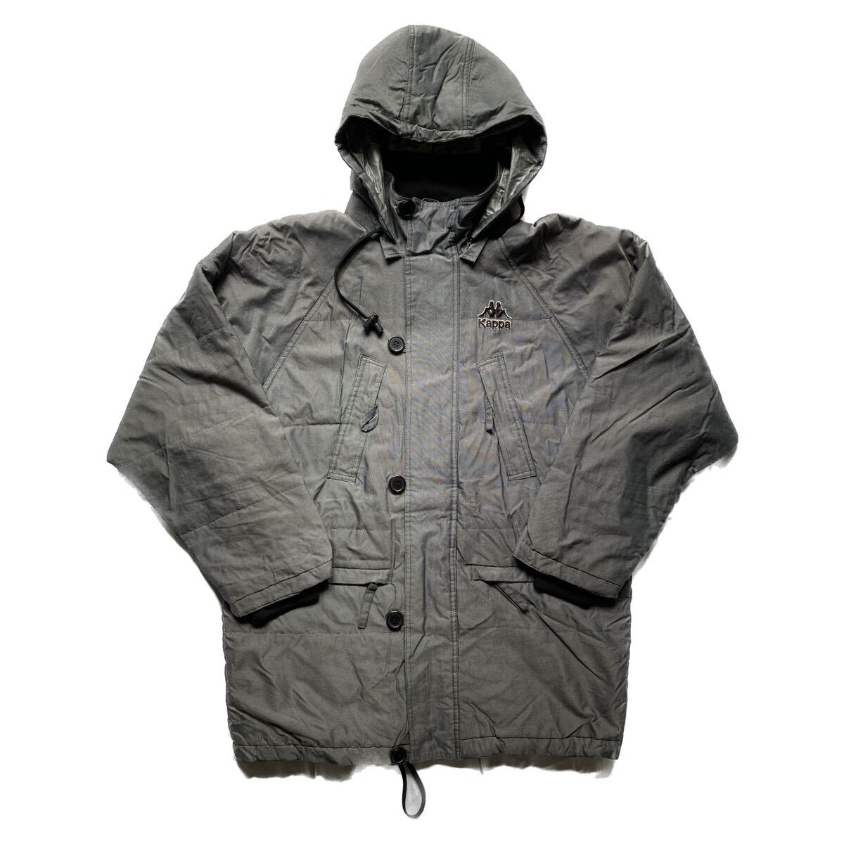 > 【希少】90s KAPPA ナイロン中綿ジャケット M フード取り外し可能 サッカー古着 カッパ パディング 90年代 スポーツ ベンチコート