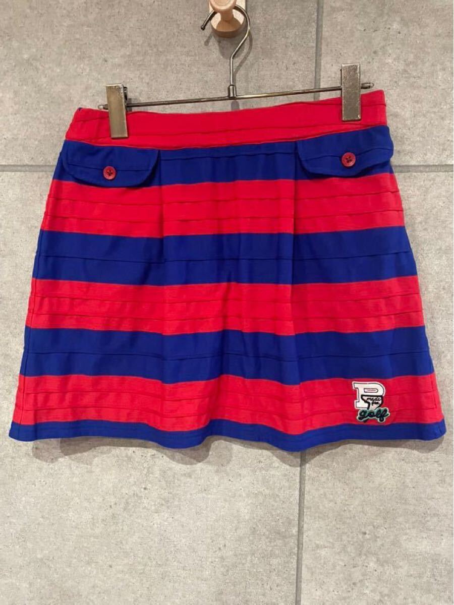 - 超キュート! PEARLY GATES パーリーゲイツ ワッペン ボーダー スカート レッド ブルー 1サイズ レディース ゴルフウェア ○ 新規×