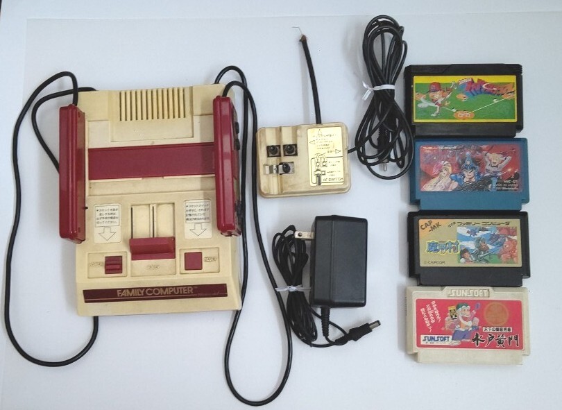 - ファミコン本体 ソフト4本 動作品 中古 ファミリーコンピュータ レトロゲーム