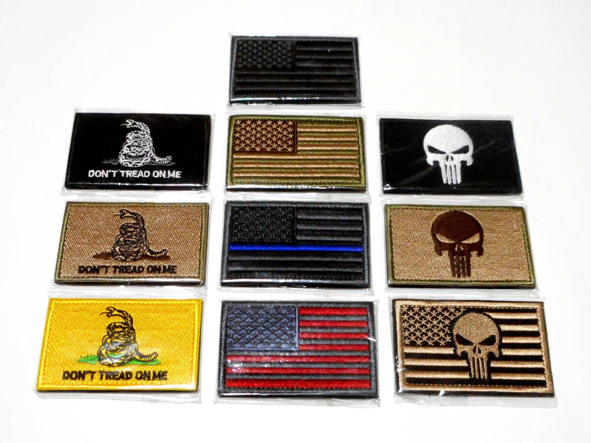 - ミリタリー 刺繍 ベルクロ ワッペン パッチ 10枚セット 米軍 アメリカ 星条旗 ドクロ 蛇 ガラガラヘビ DON'T TREAD ON ME