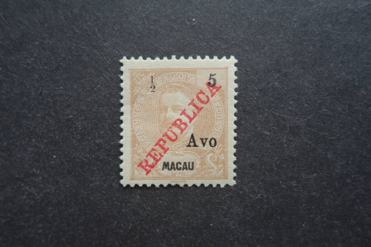 > 外国切手: マカオ切手 「カルロス1世〔1903年発行〕5a・リスボン〈Republica〉加刷に1/2aを加刷(1913年)」1種 未使用
