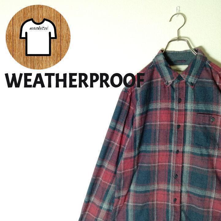 > WEATHER PROOF 長袖 ライトネルシャツ M タータンチェック A531 ヴィンテージ感 ボタンダウン 胸ポケット 柄 フランネル ロングスリーブ
