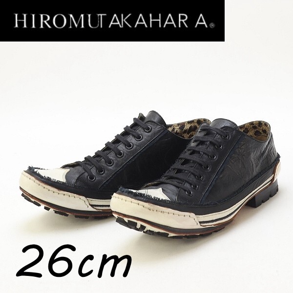 > ◆HIROMU TAKAHARA ヒロムタカハラ 裏地レオパード柄 レザー スニーカー シューズ 黒 ブラック×ホワイト 41