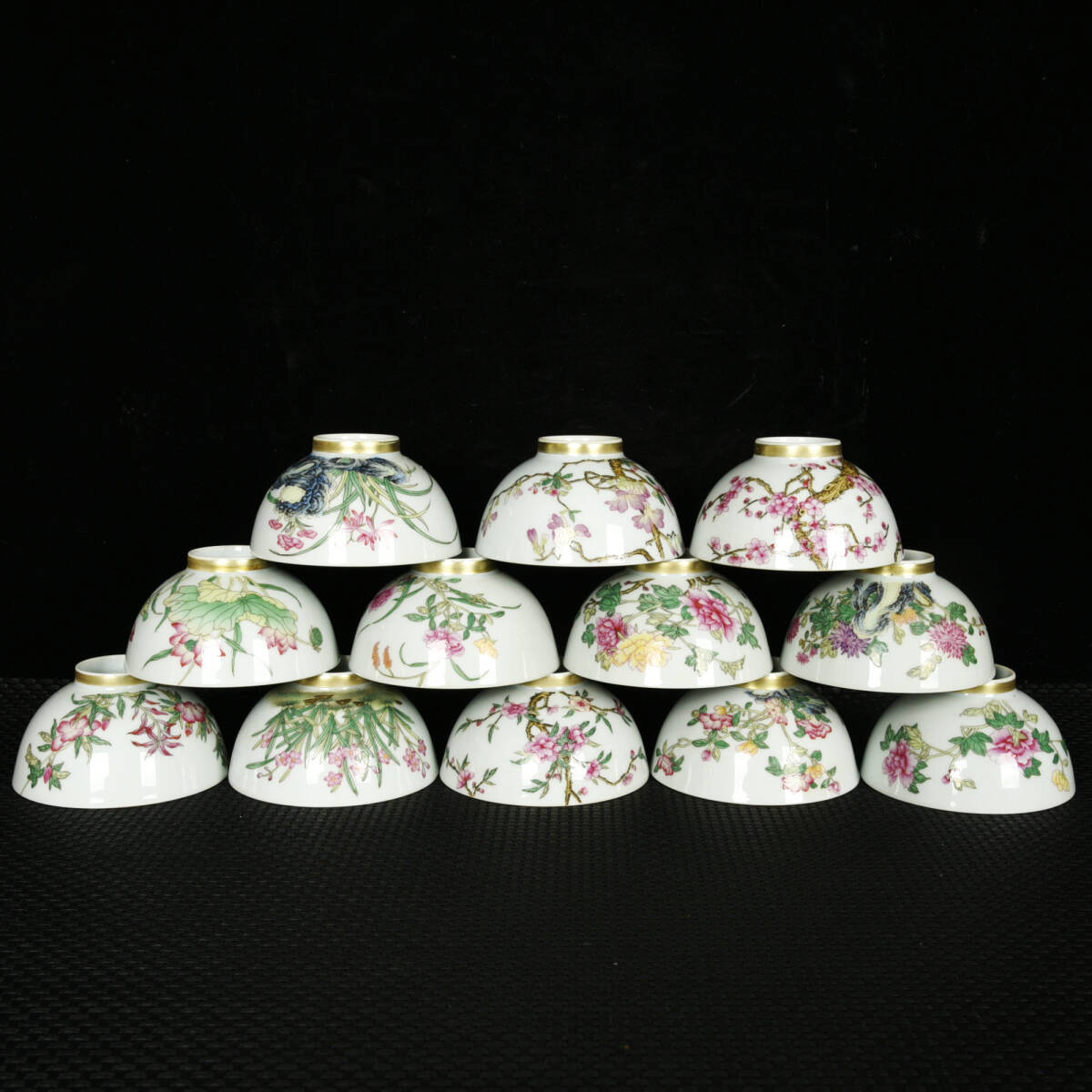 - ◆蔵出◆古美術 中国古玩 大清雍正年製款 琺瑯彩 描金 十二花神羅漢杯12点 時代物 T16