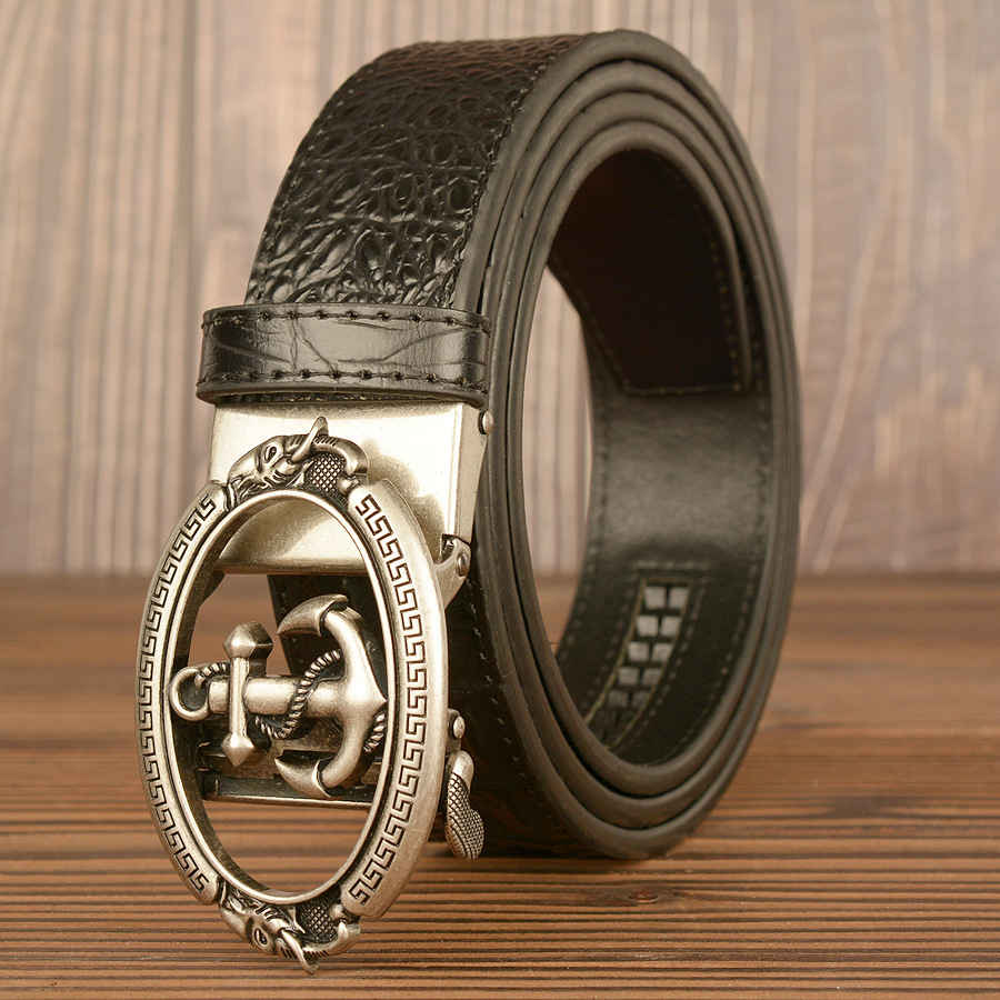 - 新品未使用新品本革 男性メンズベルト オートロック式 レザーベルト アンカーバックル ワニ柄 ファション 2色選択 黒