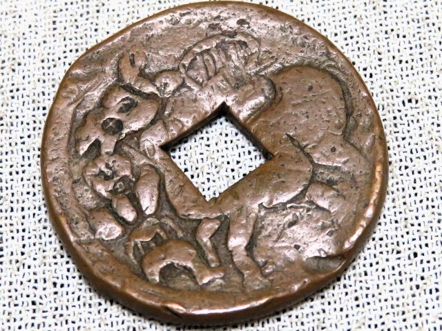 - 絵銭 駒曳銭 腰蓑馬子 直径約26mm 打印銭 穴銭 古銭 その1