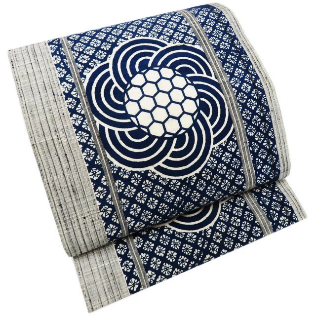 - 特選 名古屋帯 なごや帯 中古 リサイクル 正絹 紬地 全通 阿波藍染 伝統技術保持者 香川卓美(啄志) 紺色 多色 きもの北條 A1109-12